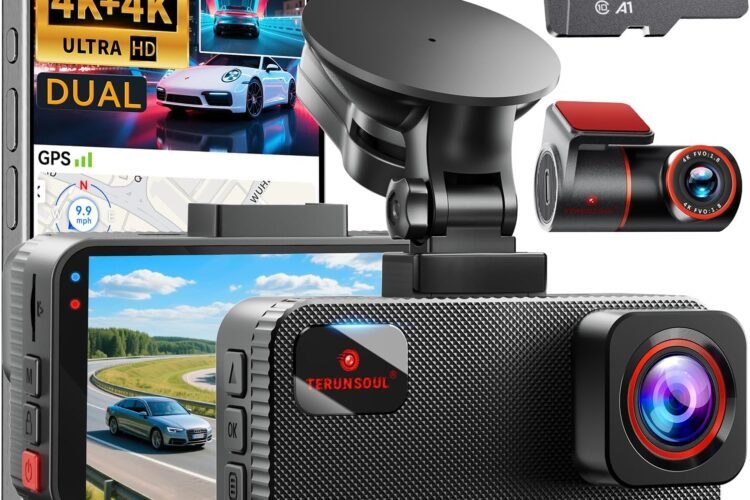 The TERUNSOUl 4K+4K Dual Dash Cam is a comprehensive on-dash camera system designed to enhance driver safety, give full coverage of the road, and provide reliable evidence in case of incidents. This model includes both front and rear cameras capable of recording in ultra-high definition (4K resolution) simultaneously, making it suitable for everyday driving, long trips, and security monitoring needs while parked.